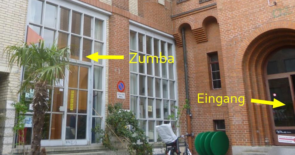 In den Hof einbiegen, bis rechts der Eingang sichtbar ist.